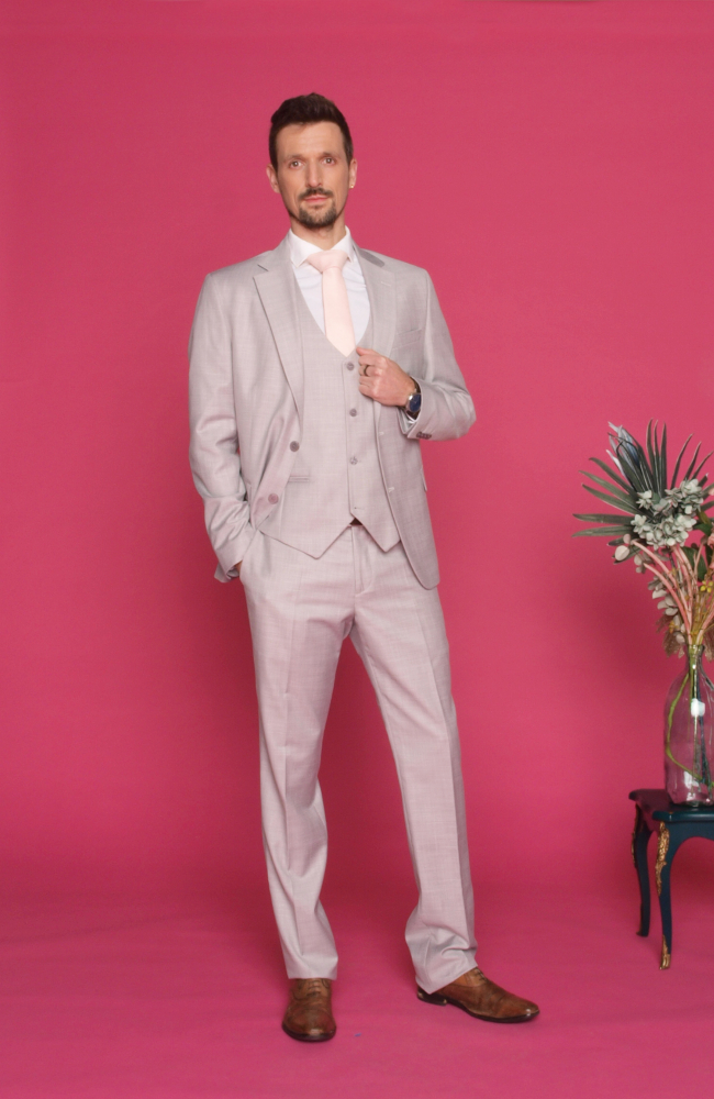 Le costume beige séduit par sa douceur et sa polyvalence. Il est idéal pour les mariages champêtres, bohèmes, estivaux ou élégants. Cette couleur claire apporte de la fraîcheur à la tenue du marié tout en conservant une grande élégance. Le costume beige s’associe parfaitement avec des chemises claires, des accessoires naturels ou des touches plus contrastées selon le style du mariage.