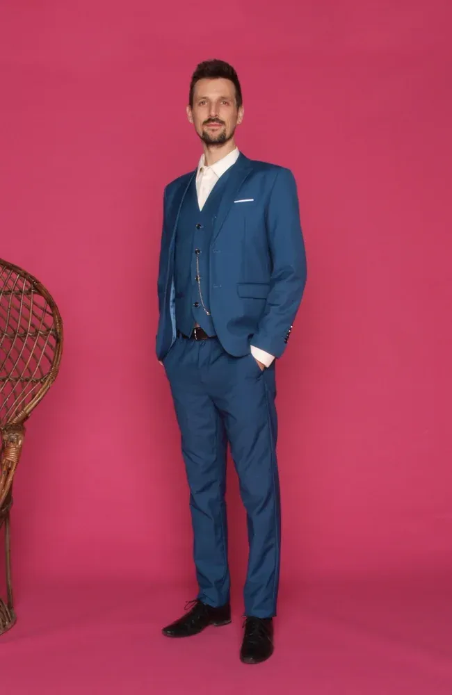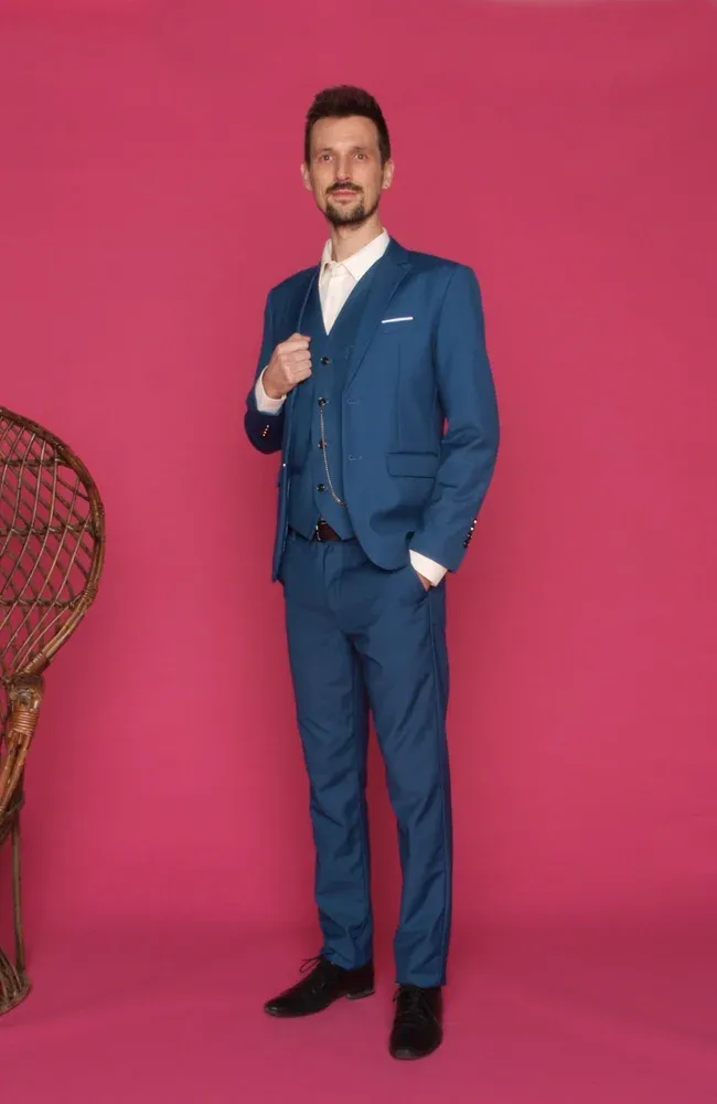 💼 Envie d’essayer un costume trois pièces bleu canard ?