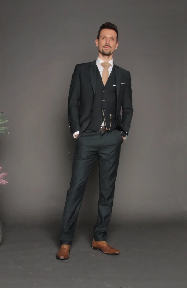 Le costume vert sapin séduit par son élégance naturelle et sa profondeur de couleur. À la fois chic et audacieux, il apporte une touche d’originalité tout en restant parfaitement adapté à un mariage. Cette teinte est idéale pour les cérémonies en extérieur, les mariages champêtres, bohèmes ou élégants, mais aussi pour des célébrations plus classiques qui souhaitent une note contemporaine.