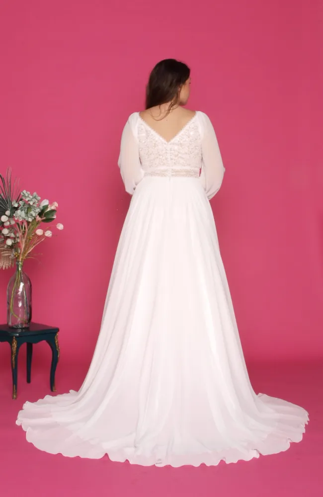 Chez Robe de Cœur, nous proposons un large choix de robes avec des manches longues, courtes, trois-quarts ou amovibles, afin que chaque marié·e trouve le modèle qui lui correspond.