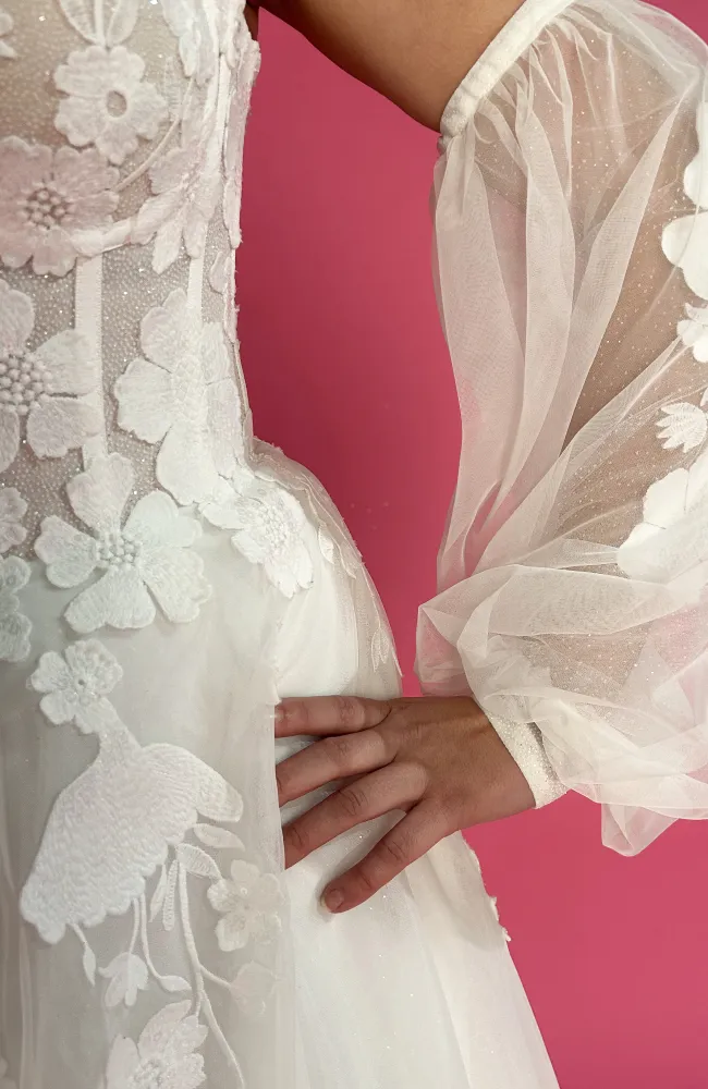 Des matières fluides et légères : mousseline, dentelle fine, tulle brodé