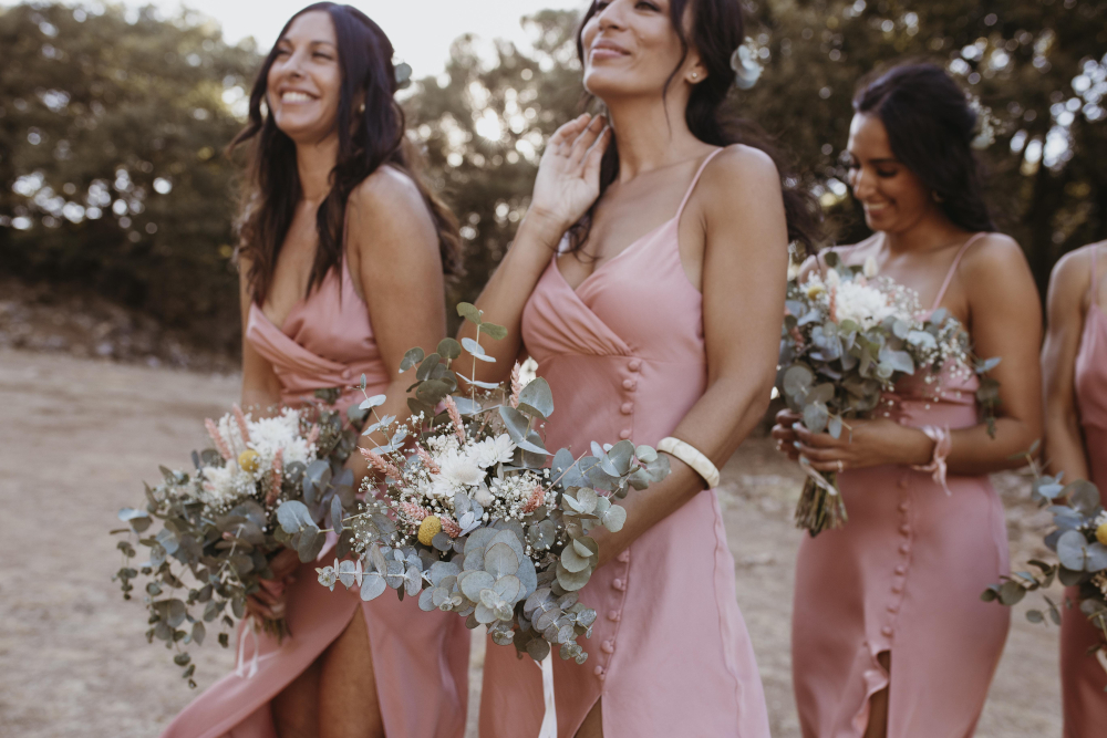 Un cardigan cachemire ou cape mousseline assortie affronte les brises tarnaises. Les accessoires subliment avec finesse : pendantes cristal rose, minaudière perlée, manchette délicate. Le rose poudré exalte les maquillages pêche, les demi-chignons tressés et les vagues naturelles.