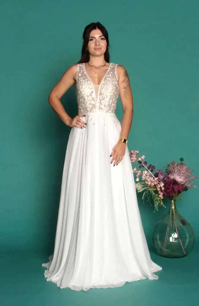 À Albi, dans notre boutique, nous proposons des robes aux styles variés afin que chaque femme puisse trouver la version qui reflète parfaitement sa personnalité. Les futures mariées venant de Rodez apprécient particulièrement nos manches en dentelle fine, nos manches bouffantes bohèmes, ainsi que nos manches longues près du corps, parfaites pour un look épuré et moderne.