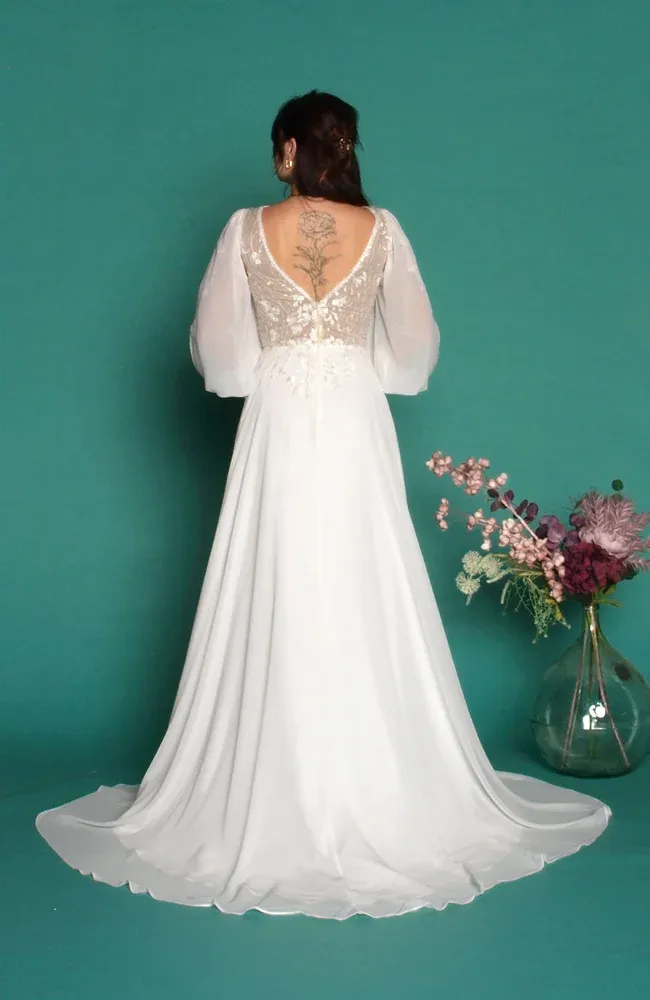 Chez Robe de Cœur, nous travaillons dans l’univers du mariage depuis plus de 10 ans, ce qui nous permet de proposer une gamme pensée pour toutes les morphologies, tous les budgets et tous les styles : dentelles délicates, tulles brodés, manches transparentes, manches ballon, manches ajustées ou évasées… Chaque mariée peut trouver la version qui lui ressemble.