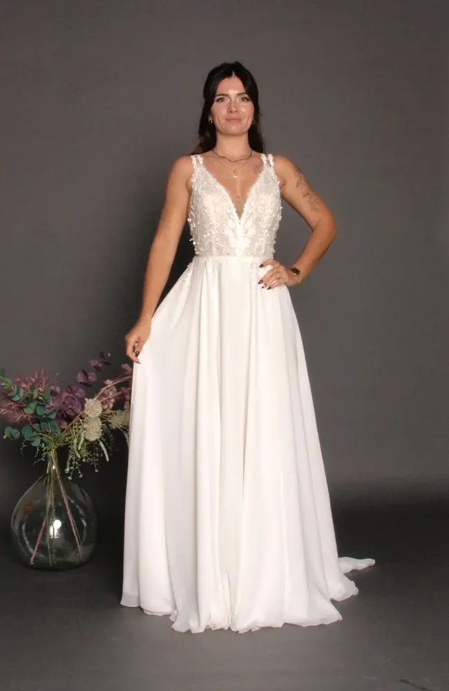 Les robes bohèmes que nous proposons se démarquent par de magnifiques dentelles, des broderies florales délicates, des jupes aériennes, des manches souples et des dos subtilement travaillés. Que vous recherchiez une robe légère pour un mariage champêtre ou un modèle finement texturé pour une cérémonie élégante aux alentours de Montauban, notre collection s’adapte à toutes les envies.