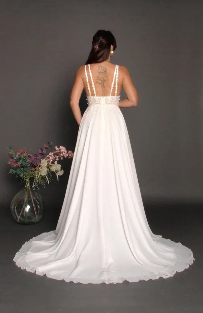 Chaque robe de mariée bohème peut être ajustée selon votre silhouette grâce à nos retouches personnalisées. Nous adaptons la longueur, la taille, le volume, les manches ou encore le décolleté afin que la robe épouse parfaitement votre corps. Nos dix années de savoir-faire nous permettent de transformer une robe magnifique en une robe véritablement unique, faite pour vous.